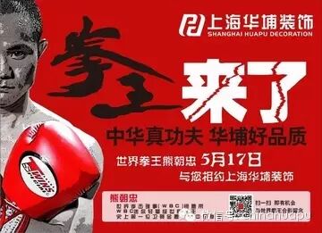 拳王来了!中华真功夫、华埔好品质!世界拳王熊朝忠先生将于5月17日莅临上海华埔装饰河南运营中心!